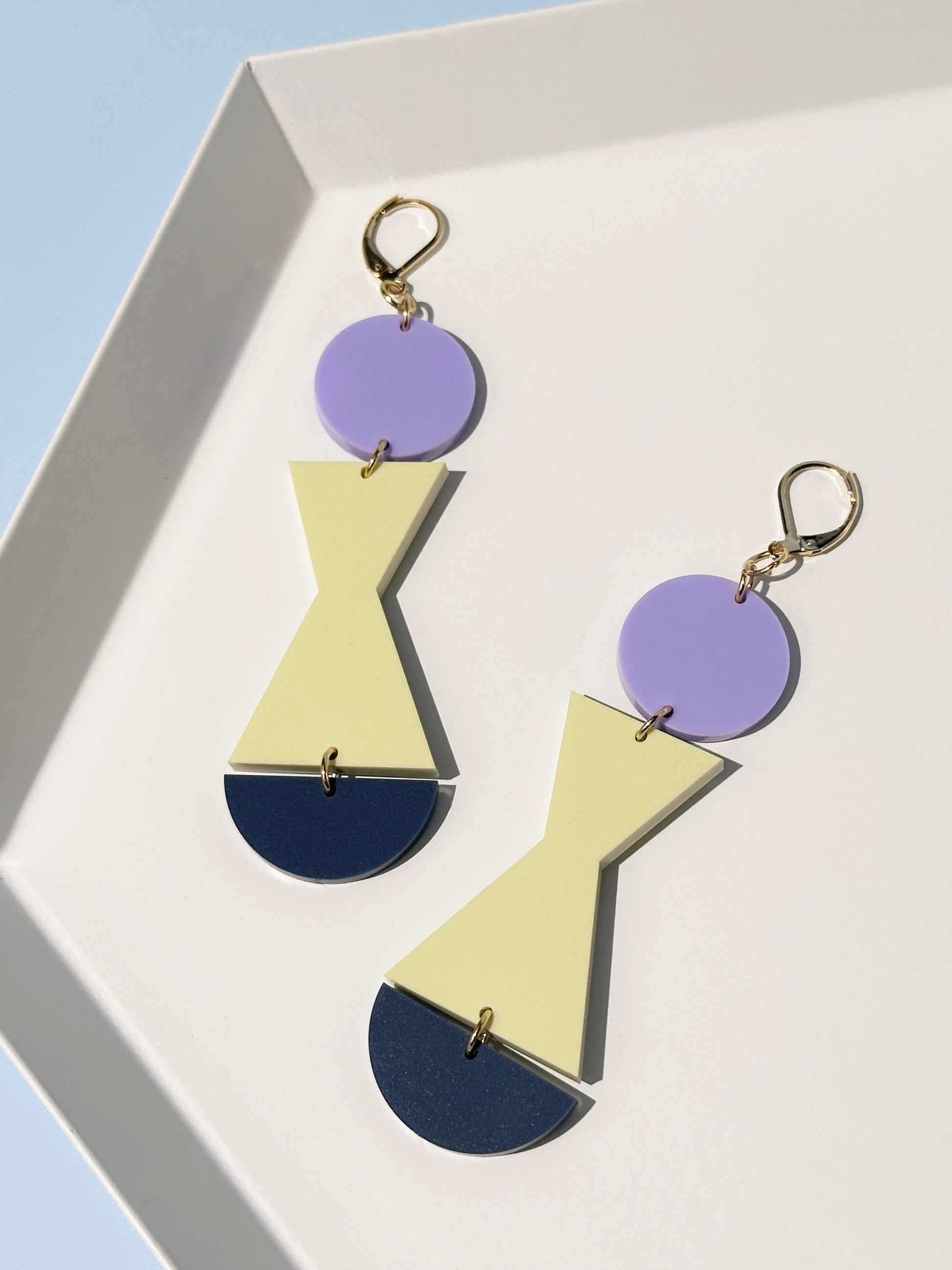 Combinist earrings are incredibly lightweight thanks to the acrylic they are made from. Most earrings have surgical stainless steel posts that are safe for sensitive ears. If you have specific skin allergies, please reach out in advance of your purchase.