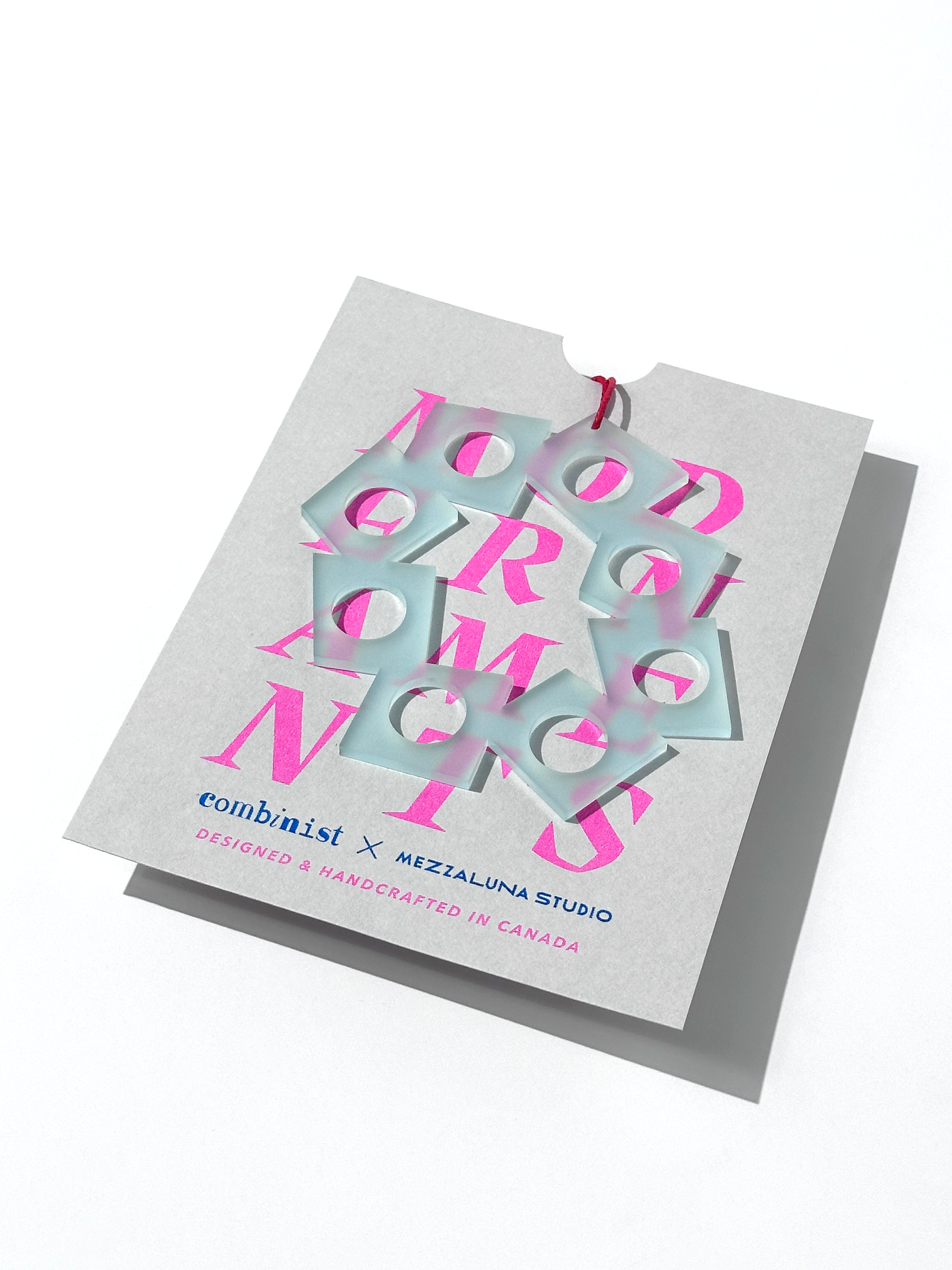 Holiday ornaments for the modernists in your life - these are part ornament, part modern art! In eight playful, geometric and unexpected shapes, the modernaments toss in a fresh twist on tradition. Keep them on your tree, or let them brighten your spaces all year long.