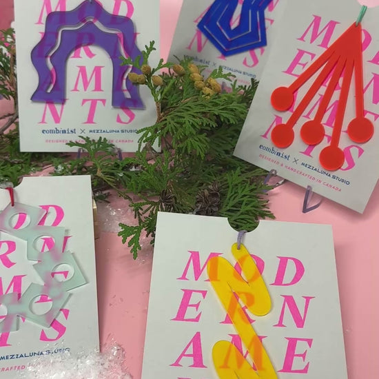 Holiday ornaments for the modernists in your life - these are part ornament, part modern art! In eight playful, geometric and unexpected shapes, the modernaments toss in a fresh twist on tradition. Keep them on your tree, or let them brighten your spaces all year long.